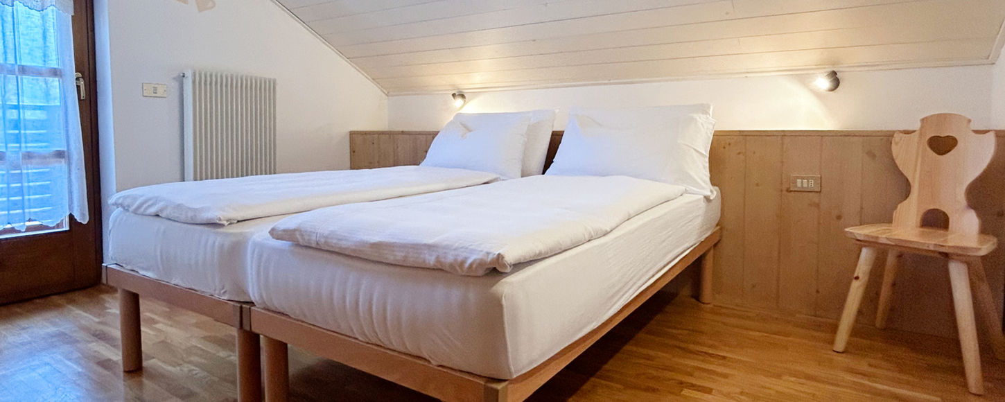 Die Dachgeschosswohnung Enzian ist eine geräumige Drei-Zimmer-Wohnung, ideal für alle, die einen erholsamen Urlaub verbringen möchten. Die Inneneinrichtung mit Naturholz und sichtbaren Holzbalken schafft eine einzigartige und stimmungsvolle Atmosphäre. Sie verfügt über ein Schlafzimmer mit Doppelbett, ein Einzelzimmer mit zwei Betten und ein helles Wohnzimmer mit Küchenzeile. Von hier aus hat man einen herrlichen Blick auf den Molvenosee, die Brenta-Dolomiten und den Gipfel der Paganella.