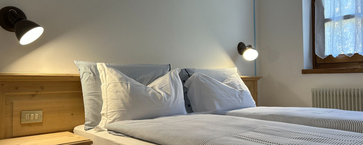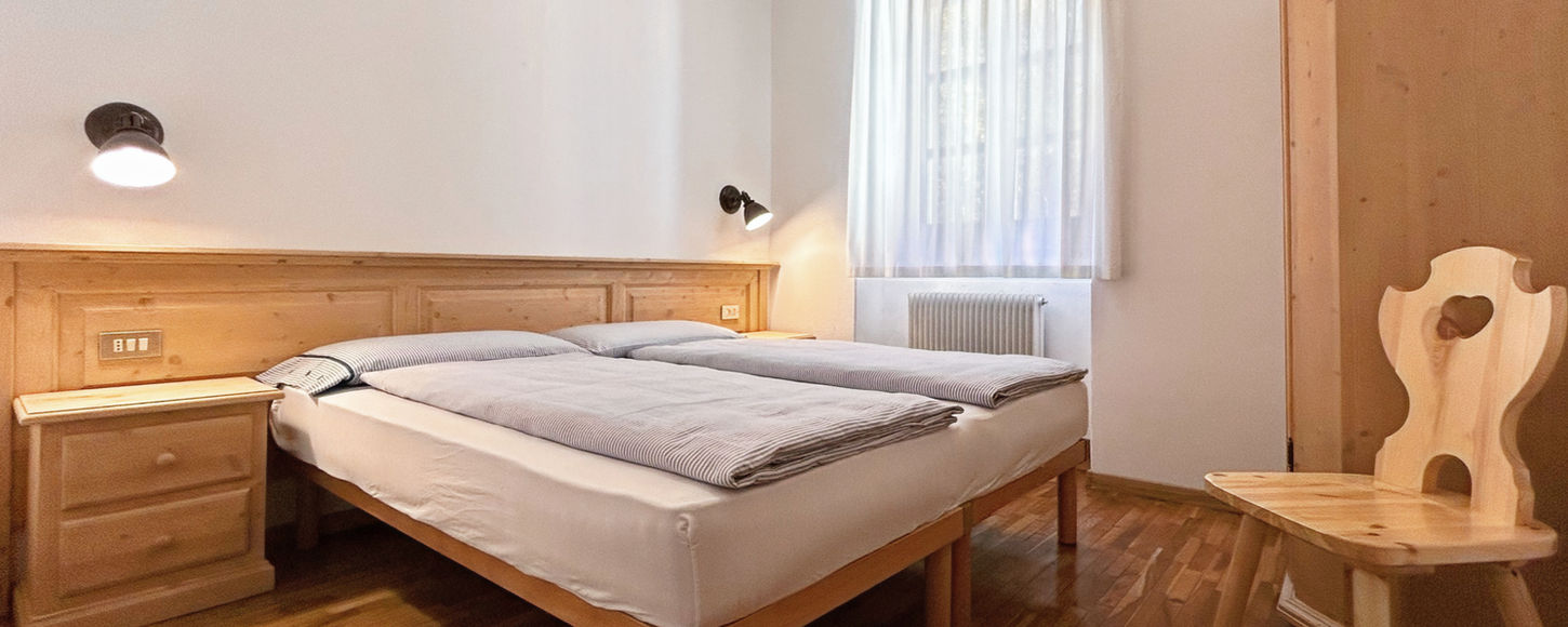 The Fiordaliso apartments, suitable for up to 4 people, are elegant two-room apartments with a rustic alpine design, enriched with precious wood and blue accents that create a cozy and relaxing atmosphere.